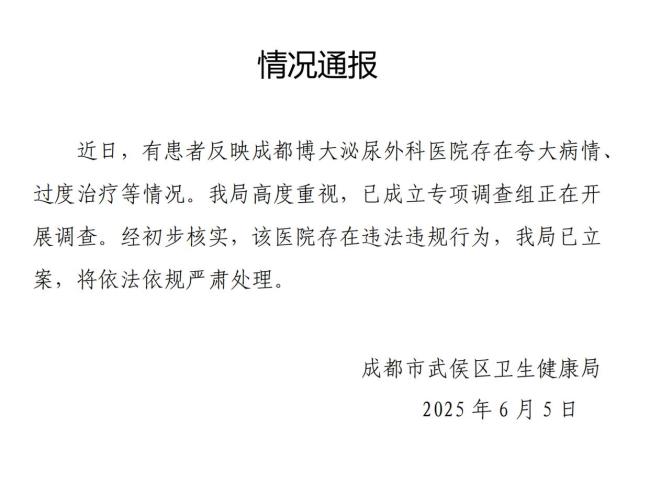 新京报讯 6月5日,健康武侯官微发布情况通报,内容如下:编辑 李忆林子