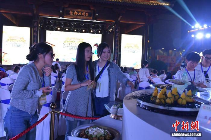 图为民众参观制作好的美食。中新社记者 储玮玮 摄