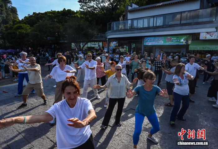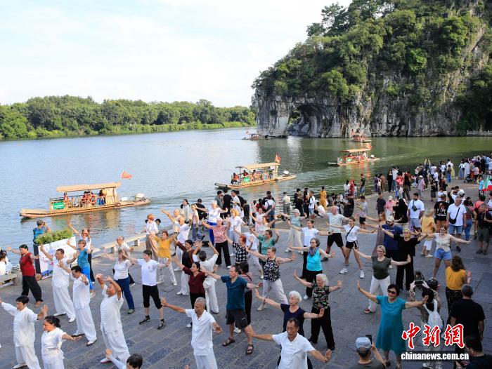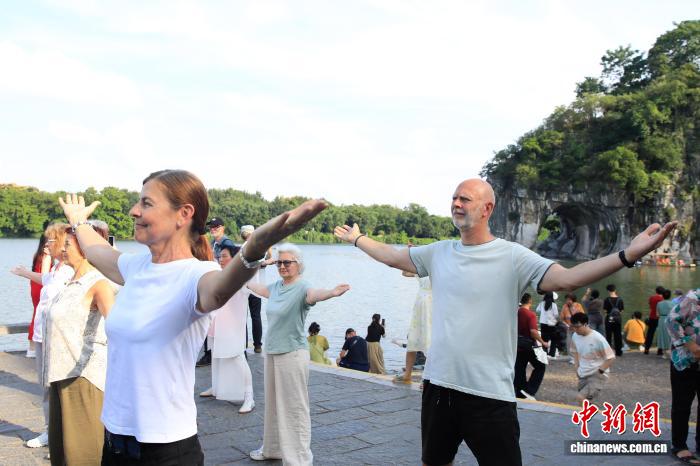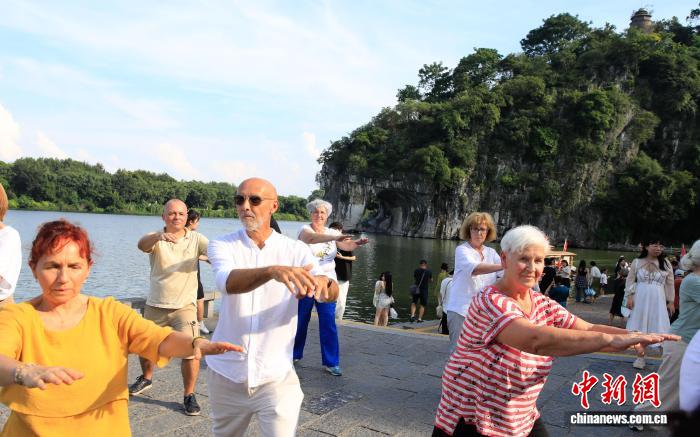 山水为媒 以拳会友:中奥太极爱好者桂林演绎东方功夫