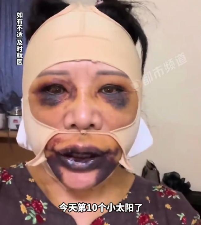 据河南广播电视台都市频道报道,上海一名58岁女子分享了自己整容10天后的面部情况。视频中,她面部仍有大片淤血,眼睛和嘴巴肿胀发紫。她自嘲像“熊猫”,并提醒大家追求美丽需谨慎,务必三思而后行。