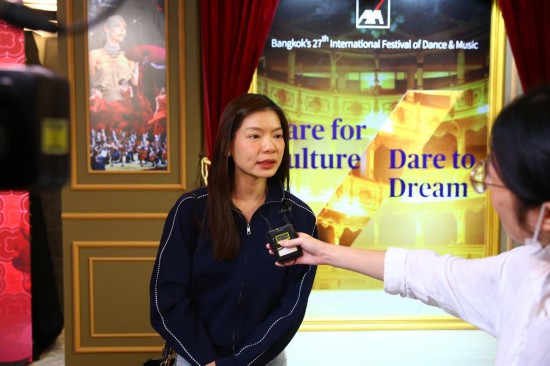 9月20日,在位于泰国曼谷的泰国文化中心,中国中央芭蕾舞团团长朱妍接受新华社记者采访。新华社记者 孙玮彤 摄