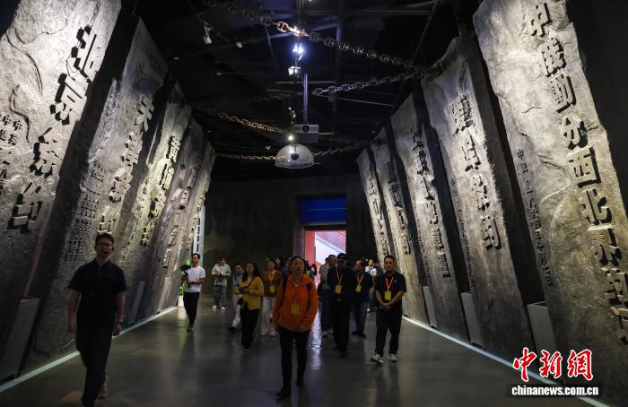 图为在辛亥革命博物院海外华文媒体代表体验XR沉浸式大空间作品《穿越·汉阳兵工厂》。中新社记者 张畅 摄