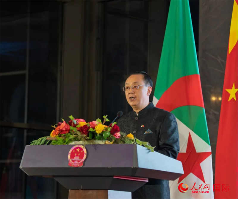 中国驻阿尔及利亚大使董广利致辞。人民网记者 郝瑞敏摄