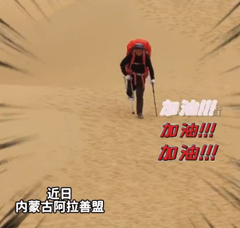 残疾小伙拄拐坚强穿行沙漠 拐杖是他不屈于苦难的宣言