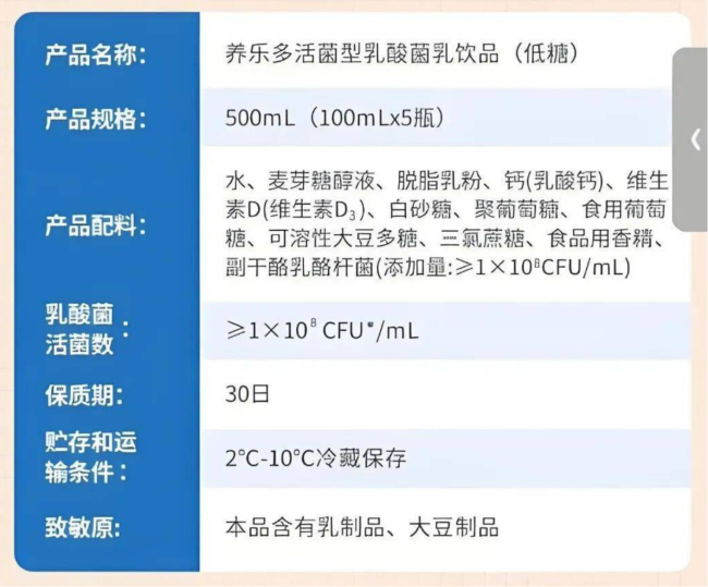 更为关键的是,出自乳品企业的“优益C”和“每益添”自带健康buff,而养乐多的配料却是“水、白砂糖、脱脂奶粉、葡萄糖、食品添加剂(葡萄糖)、活性乳酸菌”,对于健康知识越来越高的当代消费者,在驱动消费者购买行为的配料层面,养乐多的“护城河”早已土崩瓦解。