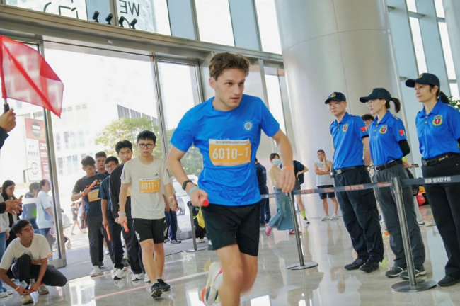 在比赛现场,运动员们、志愿者们的气氛热烈,个人组选手全力冲刺,团队组接力队员们配合默契,共同在垂直赛道上留下了拼搏的身影。从1层到73层,运动员们用不断向上的脚步与“城市高度”之间展开了一次深入的交流。本届垂直马拉松中,除了在比赛现场的参赛者,还有来自北京、上海、广州等多个城市的参赛者在其所在城市同时攀登高楼,一同感受运动的魅力。