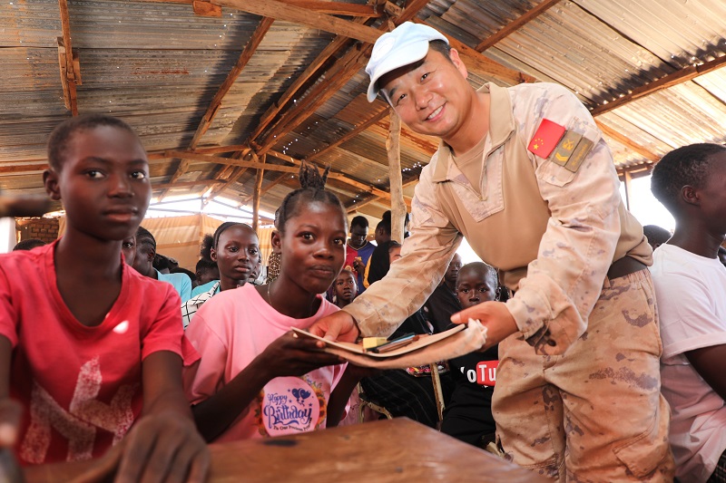 “孩子是国家的未来和希望。我们希望通过微薄的援助,为改善孩子们的学习条件尽一份力,更希望在他们心中播下和平与友谊的种子。中国军队不仅是和平的守护者,也是友谊的桥梁。”中国维和工兵分队政工组组长陈龙阁说。