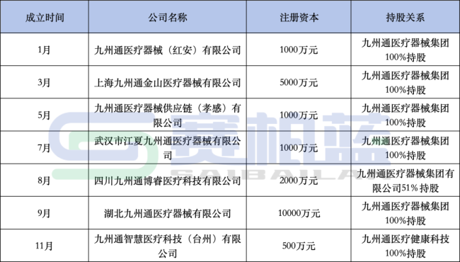 截至目前,九州通年内已成立7家涉及汽车/电车销售的公司。