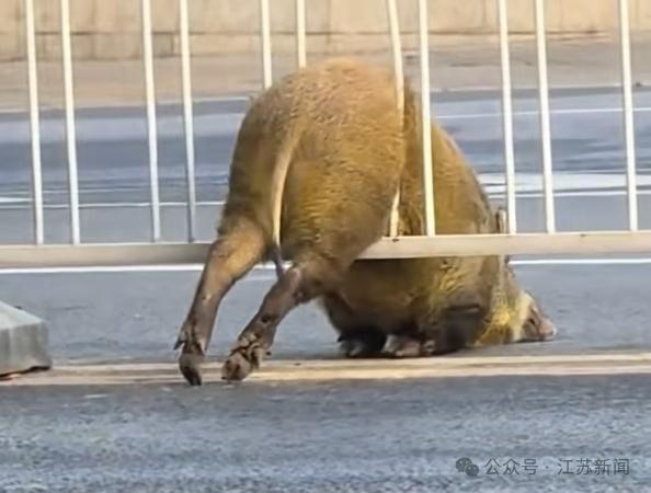 11月21日早高峰,南京博物院附近路段出现了一头野猪横穿马路时不慎卡进护栏的情况。由于车流量大,市民不敢贸然救助,热心市民报警求助。事发后,多部门迅速赶到现场处置,并已处理完毕。