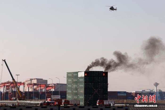 图为演练模拟上海市宝山区川念路28号的港区码头集装箱堆放区突然发生“燃爆”。中新社记者 殷立勤 摄