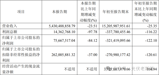 2025年前三季度,合盛硅业实现营业收入152.06亿元,同比大幅下降25.35%;归母净利润为-3.21亿元,同比大幅下滑122.10%,当期经营陷入亏损状态。
