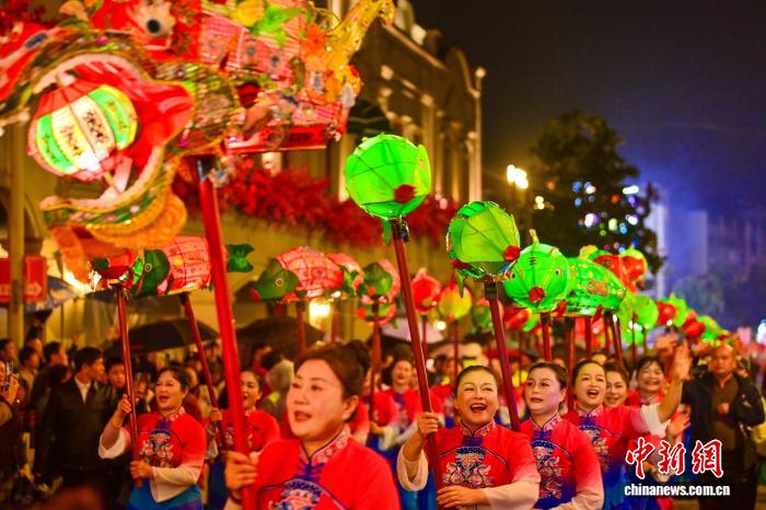 元宵之夜 “客家摇篮”江西赣州上演客家民俗巡游