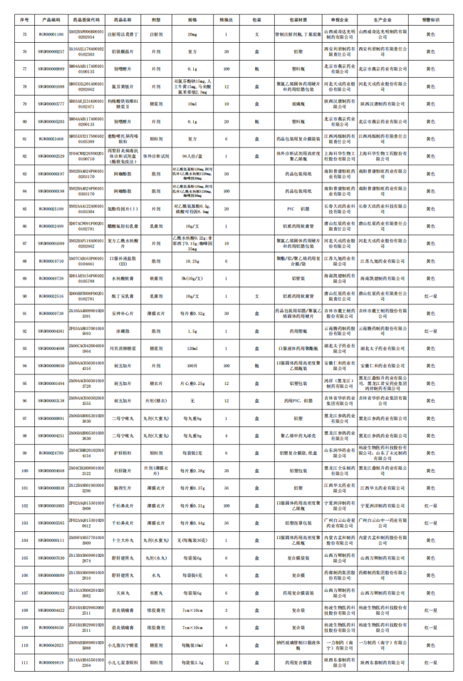 赛柏蓝梳理发现,此次被点名的123个药品中,被标为黄色、红一星、红二星、红三星的分别为91个、28个、2个、2个。其中,红三星预警2个药品均为化学药。