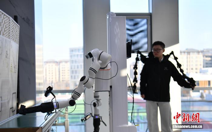 1月8日,河北雄安新区中国雄安集团数字城市科技有限公司具身智能训练场内,机器人在进行物流装配应用场景训练。中新社记者 韩冰 摄