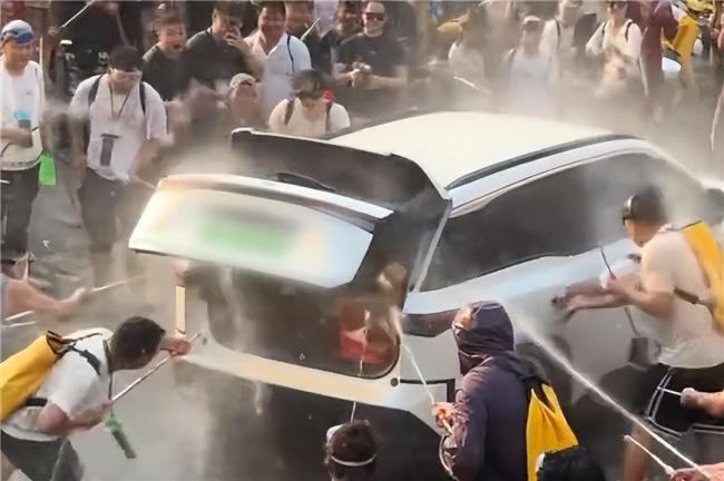 在热闹的云南泼水节现场,街道上满是相互泼水送祝福的人群。一辆来自东北的广汽丰田铂智3X缓缓驶过,却突然出现不和谐的一幕。多名围观群众围住车辆,向车内泼水并反复拉扯车门,甚至有人打开了车辆尾门,向车内灌水。混乱中,车内冒出“白烟”,这一幕被现场群众拍下并传到网上,引发热议。不少网友担忧纯电车辆进水后可能出现电路故障,甚至引发安全风险。