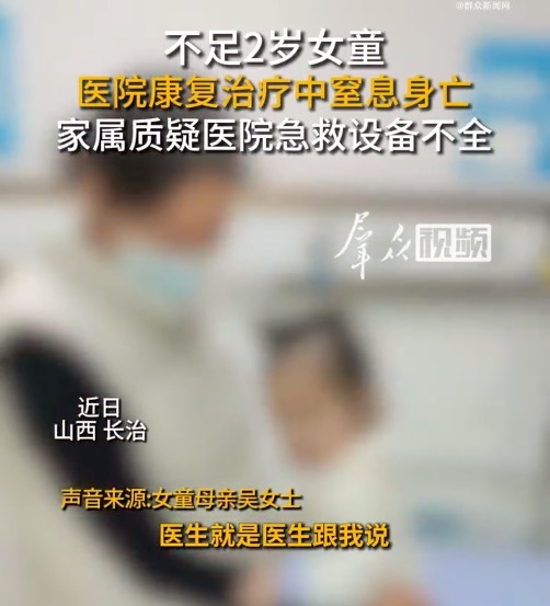 不足2岁女童医院康复治疗中身亡 家属质疑医院急救设备不全