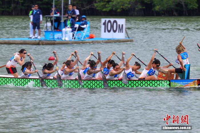 图为女子组12人龙舟100米直道赛半决赛现场。中新社记者 骆云飞 摄