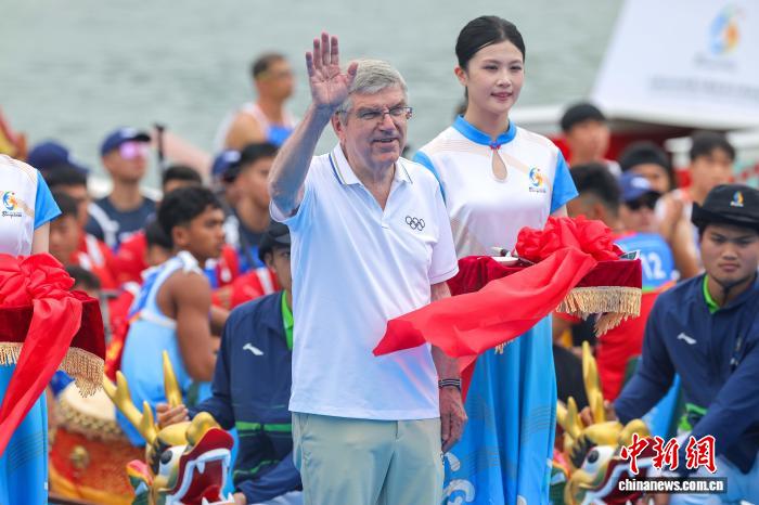 图为国际奥委会终身名誉主席巴赫出席龙舟点睛仪式。中新社记者 骆云飞 摄