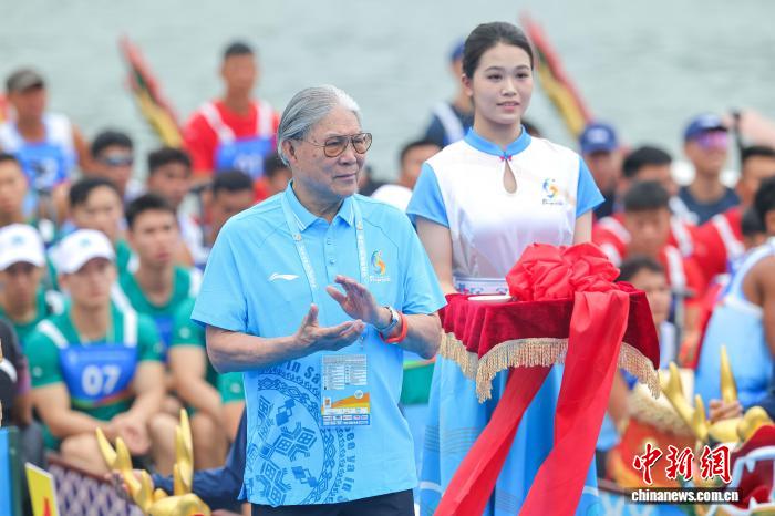 图为亚奥理事会第一副主席霍震霆出席龙舟点睛仪式。中新社记者 骆云飞 摄