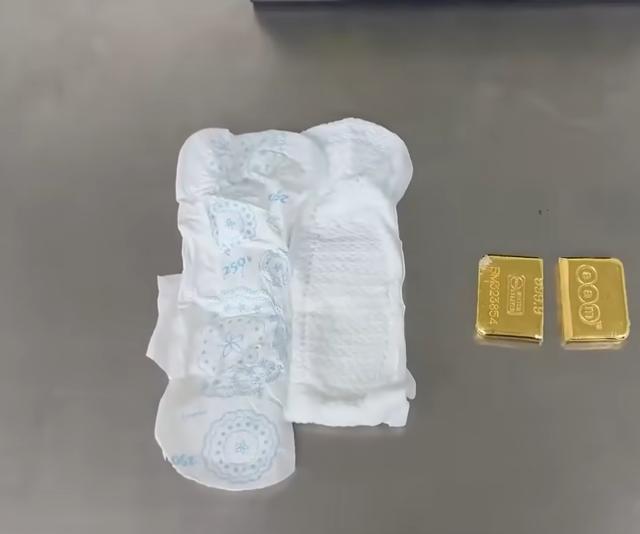 近日,罗湖海关查获一名进境旅客贴身穿着的卫生巾内夹藏了674.7克足金块。事发当天,关员注意到一名女性旅客进入海关监管区时未向海关申报,且表现得神色紧张、步伐僵硬,因此决定对其进行检查