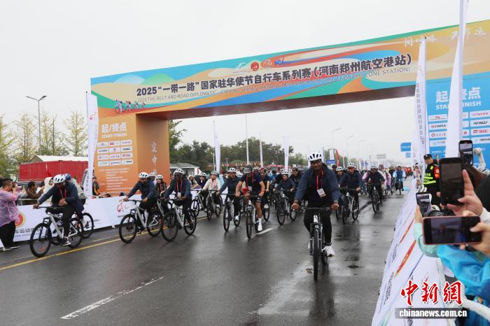 中新网郑州9月27日电 (陈贵洋)9月27日,2025“一带一路”共建国家驻华使节自行车系列赛在河南郑州航空港经济综合实验区(以下简称郑州航空港区)双鹤湖中央公园开赛,来自马来西亚、利比里亚、厄瓜多尔、西班牙等“一带