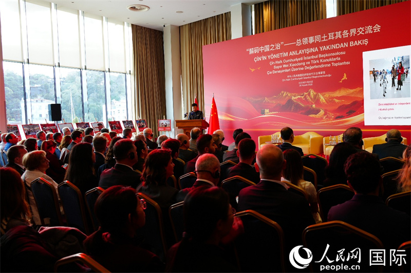 人民网伊斯坦布尔11月27日电(记者李明)当地时间11月26日,中国驻伊斯坦布尔总领事馆举办“解码中国之治”——总领事同土耳其各界交流会。中国驻伊斯坦布尔总领事魏晓东出席并发表主旨演讲。土工商界、智库