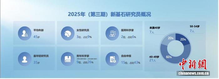 中新网北京11月24日电 (陶思阅)作为目前国内社会力量资助基础研究力度最大的公益项目之一,“新基石研究员项目”经过半年多的申报与评审,于24日在京揭晓第三期获资助名单。名单中的35位科学家平均年龄45岁,其中青年