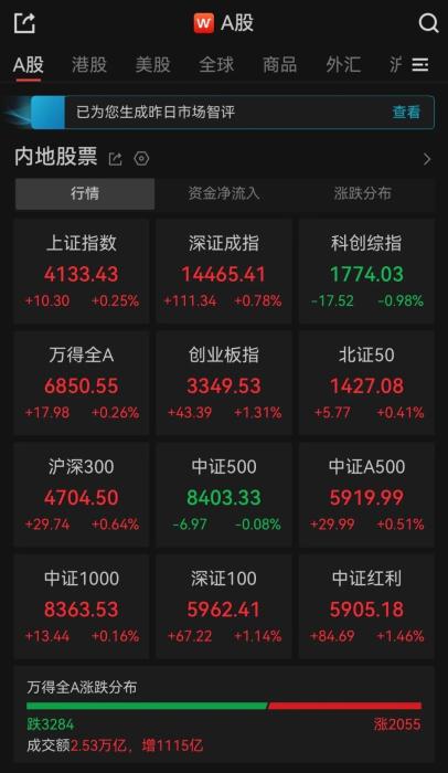 11日,A股三大指数高开,沪指探底回升,深指、创业板指全天震荡。Wind数据显示,截至收盘,上证指数涨0.25%,深证成指涨0.78%,创业板指涨1.31%。